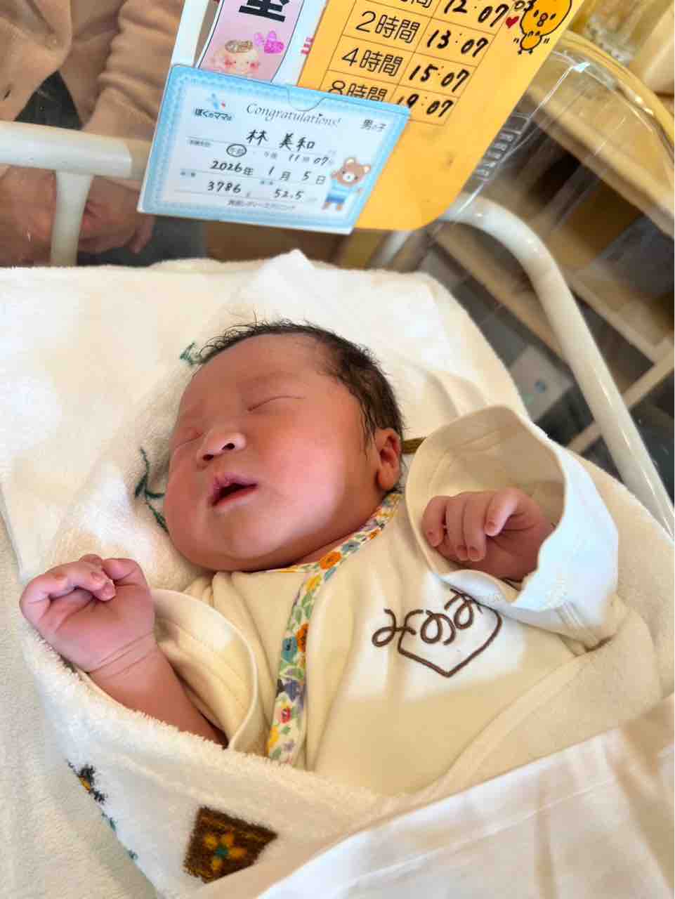 5日に生まれた三人目の孫。名前が決まりました。元気そうでなにより。