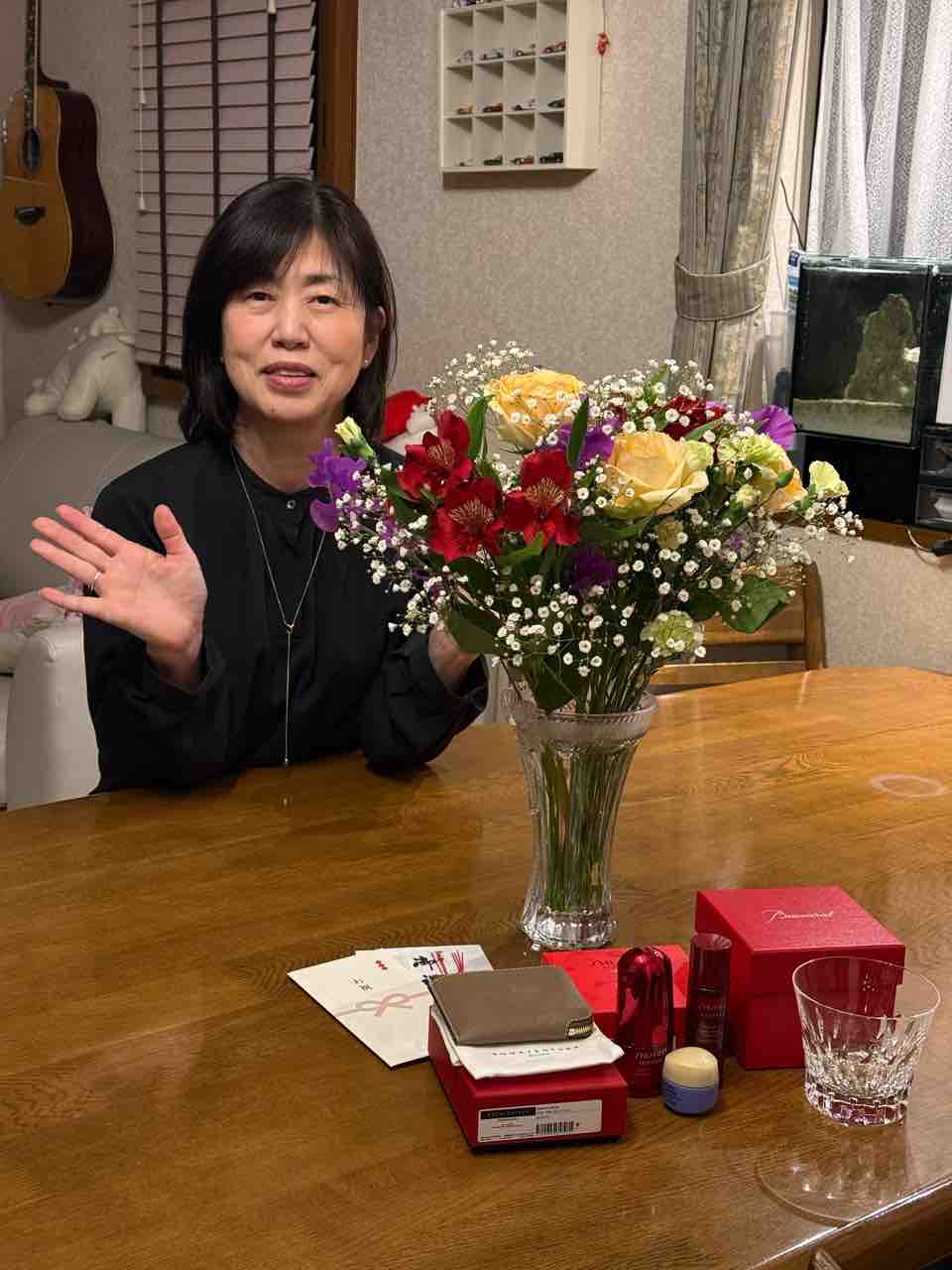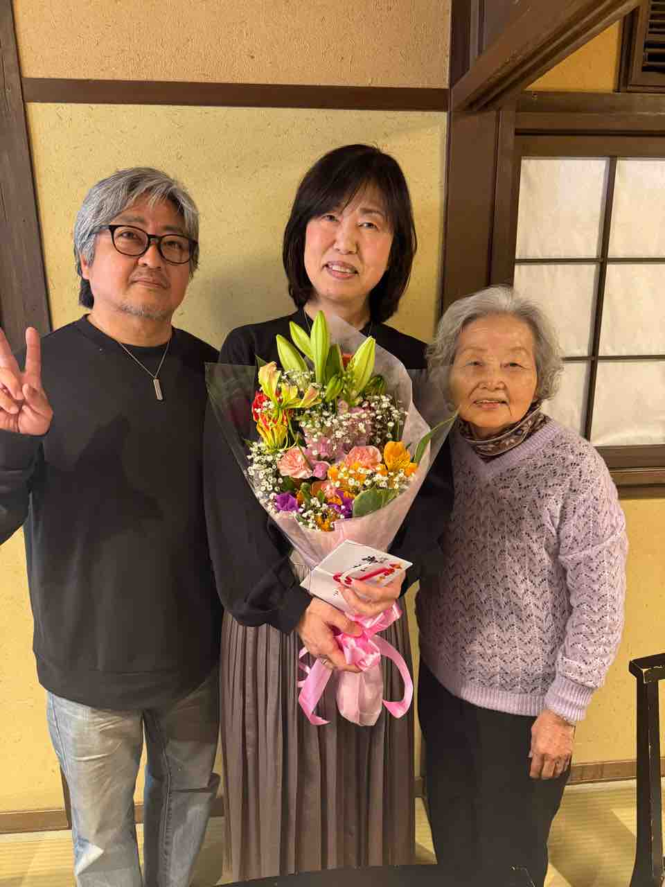 おばあさんから花束のプレゼント。