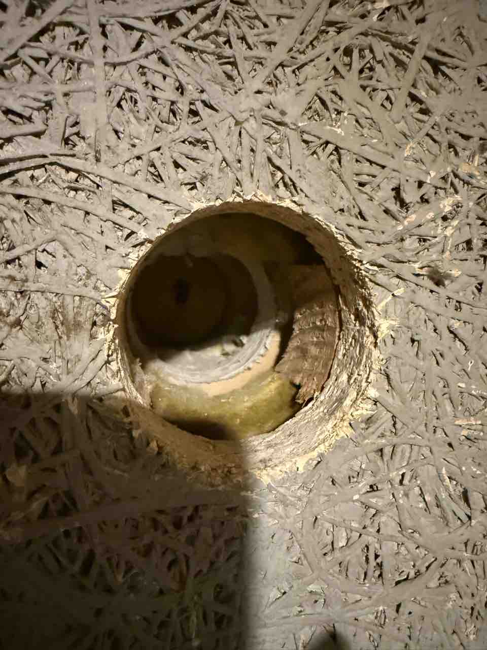 穴開けりゃ済むはずが、壁が厚すぎて穴が開かない。。残念ながら再工事となりました。