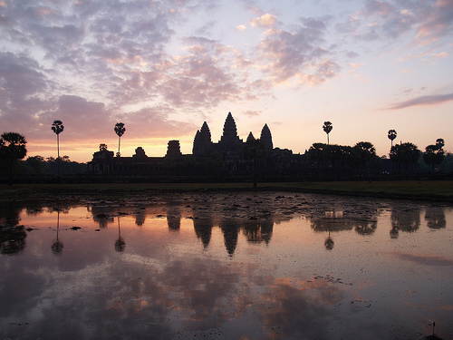 今日は五時過ぎにホテルを出発し、アンコールワットの朝焼けを見に行きました。到着時はまだ暗かったのですが、写真入の入場証を入り口で作成してもらい入場しました。この入場証は一日20ドルですが、カンボジアの遺跡を見学するためには必ず必要です。