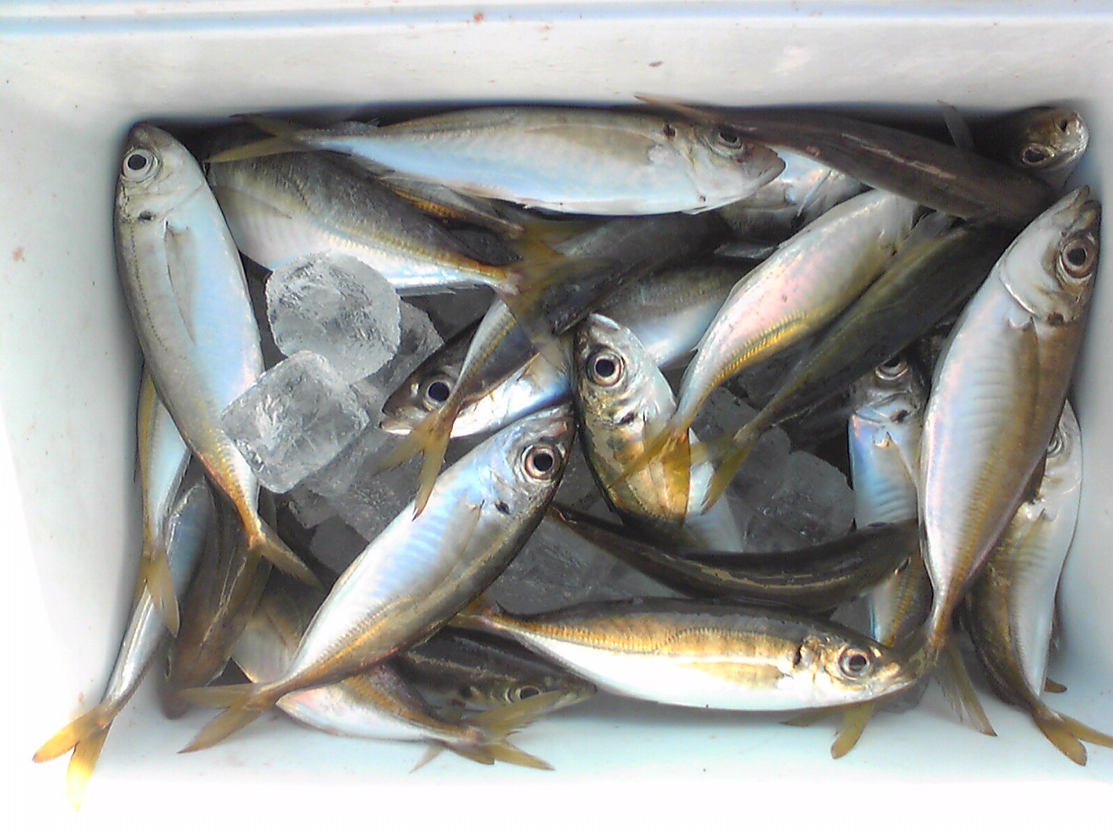 家に帰ると食塩水に浸し、干しかごに入れて一夜干しに。おかげで数日間にわたって晩飯はアジだそうだ。