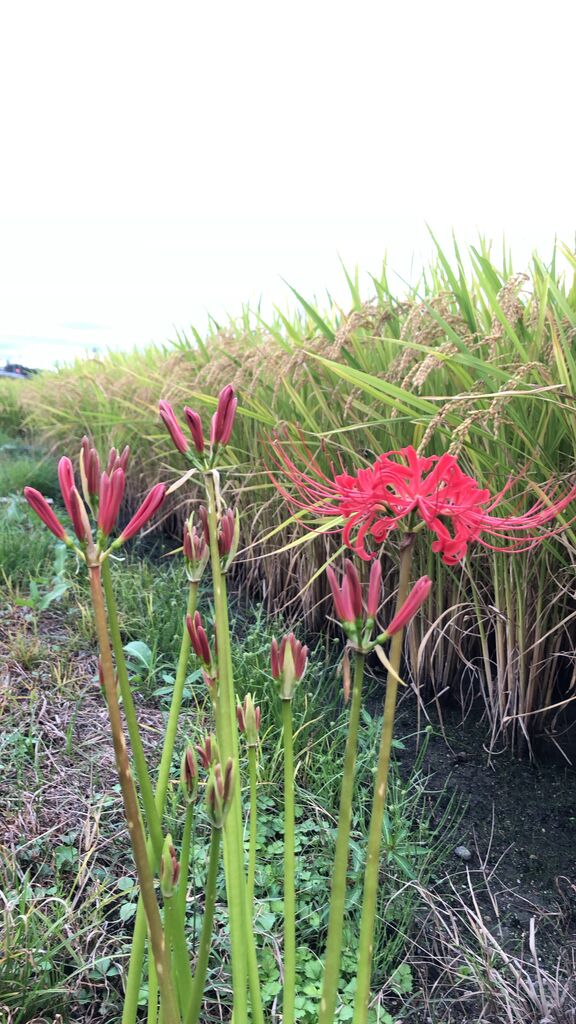 畑の脇には彼岸花。時期により数種類の花を見れることも畑作業の楽しみのひとつです。