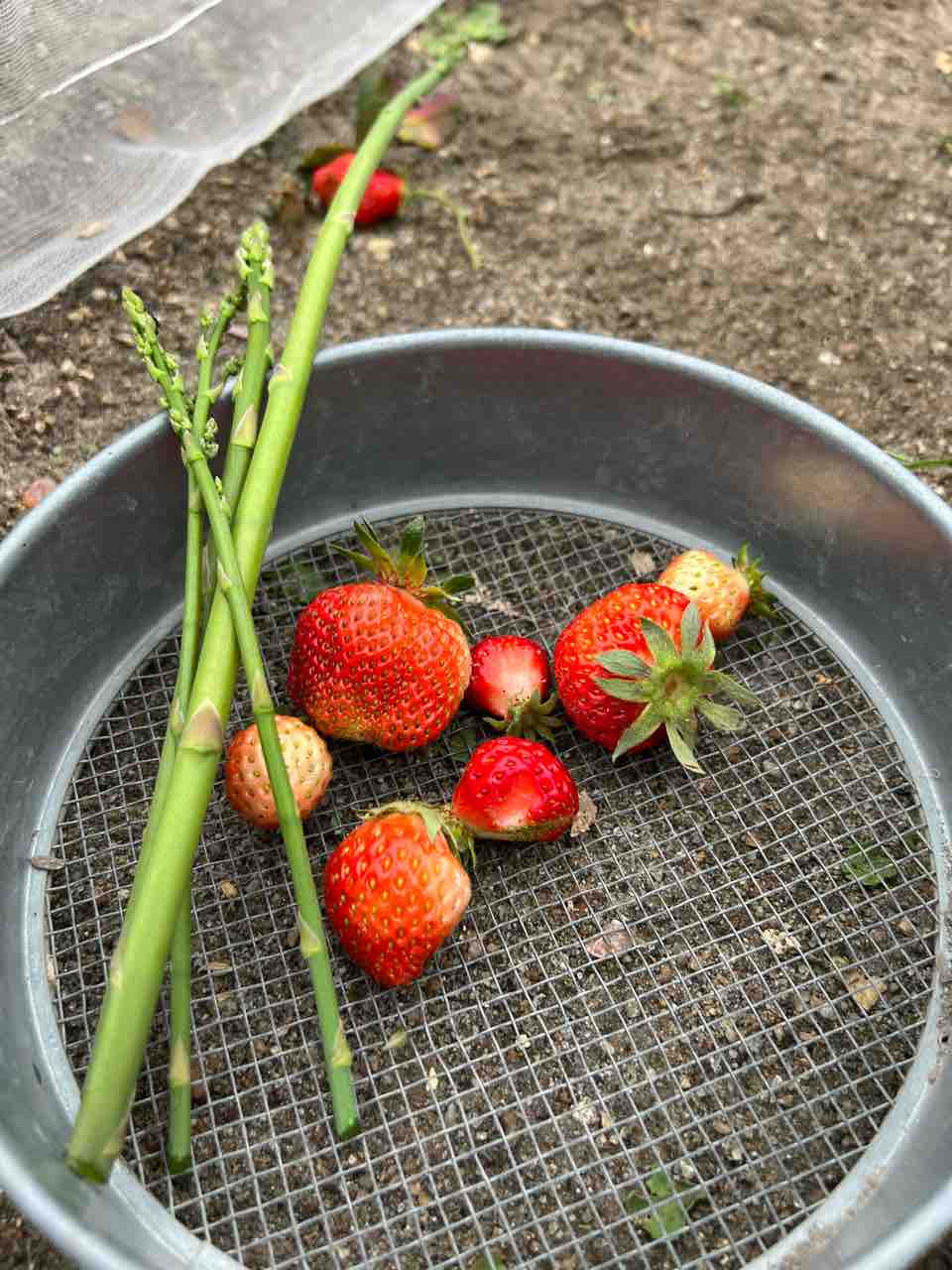 去年は爪楊枝ほどの太さだったアスパラ。今年は少し太くなり食べれるほどに成長しています。