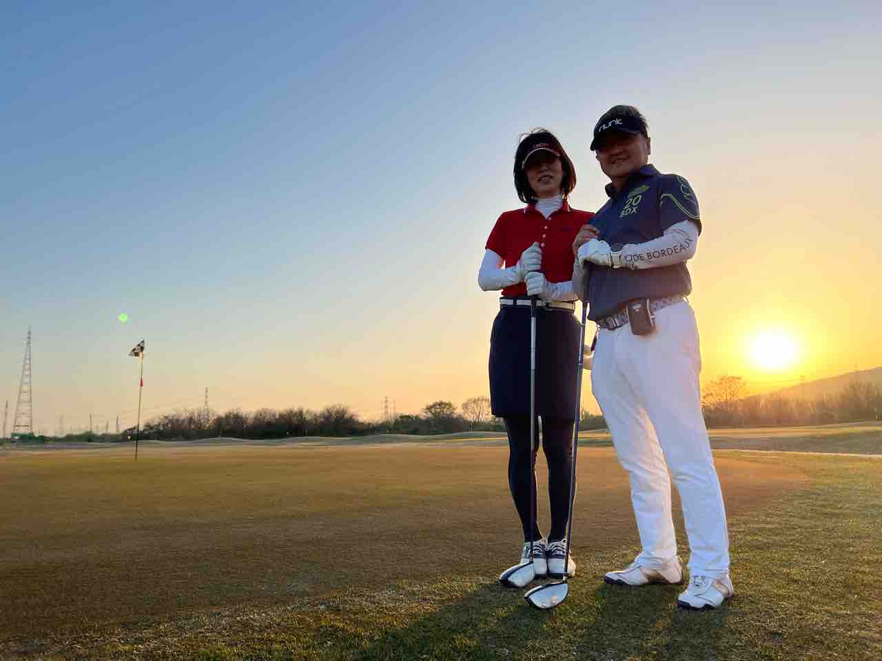 午後からのスループレイでしたが、下手&初心者の4人ですから時間はオシオシ。最終上がりはもう夕陽が綺麗でした。