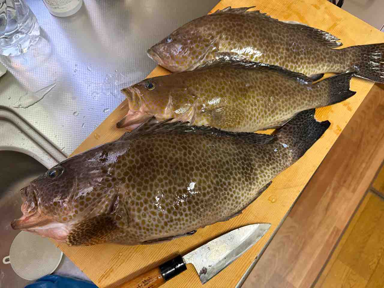 青物釣れずでしたが、大きなオオモンハタ釣れました。