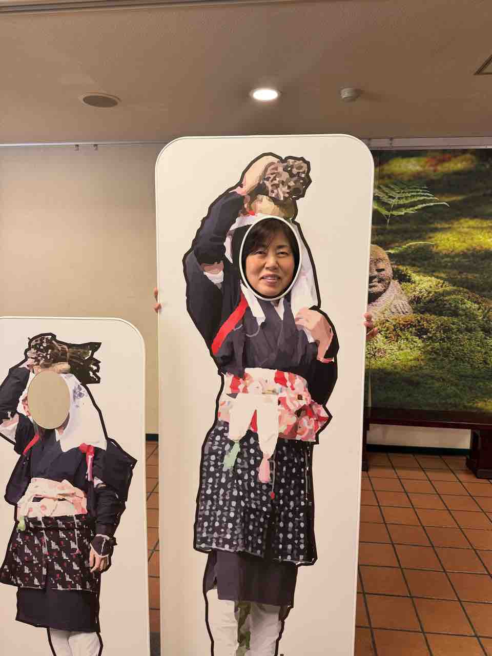お決まりの顔出しパネルで記念撮影。