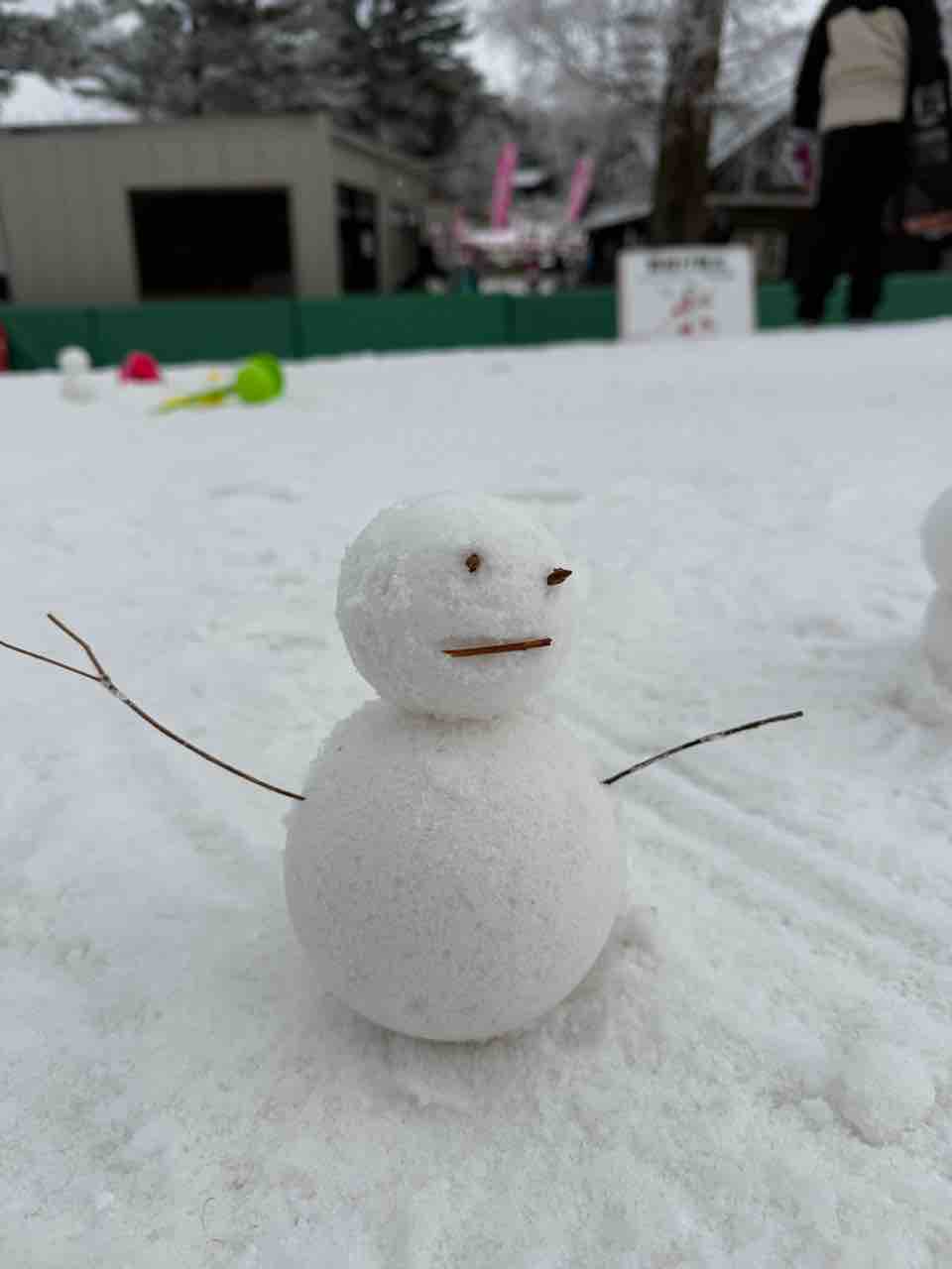 雪丸め器(?)でまるめた雪で雪だるま。